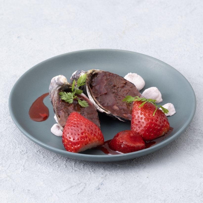 真牡蠣の殻を丁寧に煮沸し、うつわとして再活用したユニークな“牡蠣チョコ”。中には、香ばしいピーナッツやクルミと特製生チョコレートがたっぷりと詰まっています。とちあいかを生チョコレートにディップしたり、周りに添えたとちあいかのホイップと一緒に味わったり、楽しみ方も様々です。