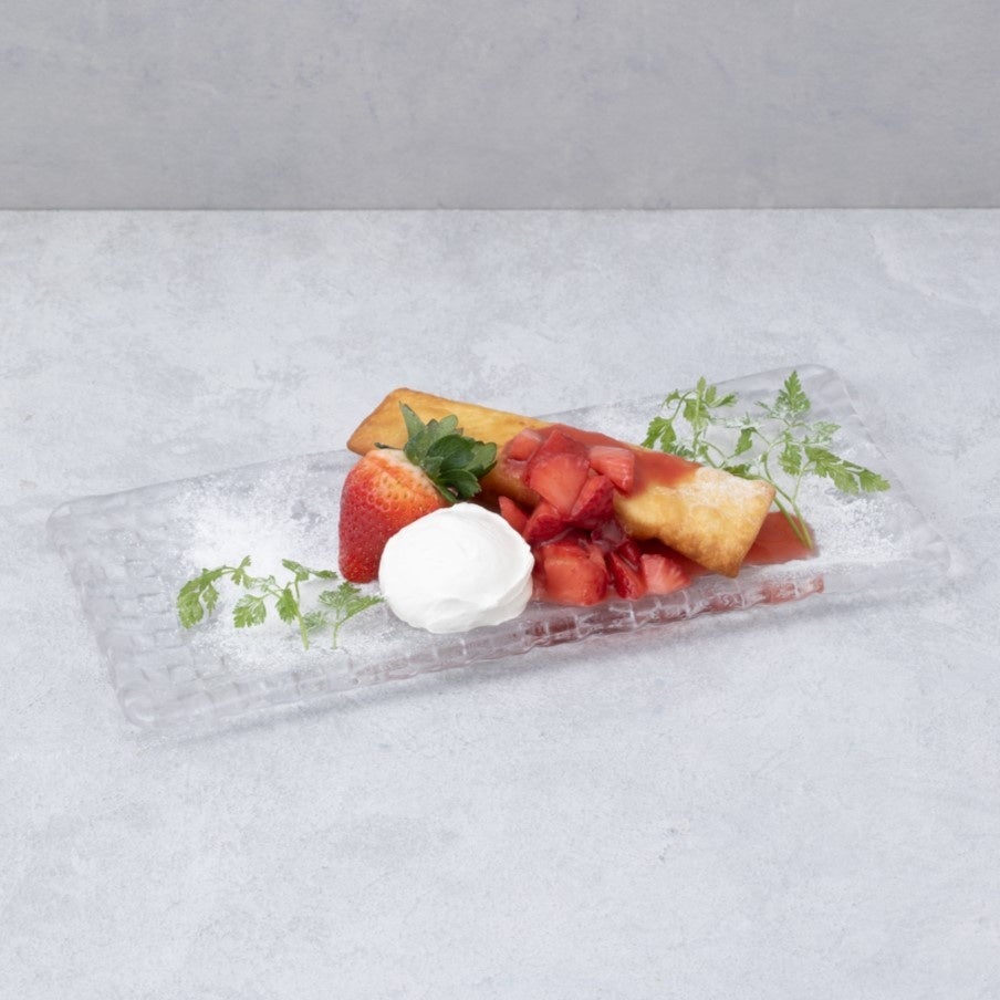 揚げたてのトルティーヤと、とちあいか、バニラアイス、いちごソースが絶妙に組み合わさった、個性的なスイーツ。トルティーヤの中には、アガベシロップで優しく甘さを引き立てた自家製マスカルポーネクリームとチョコチップが入っています。チョコチップの食感と、とちあいかの爽やかな甘酸っぱさがアクセント。
