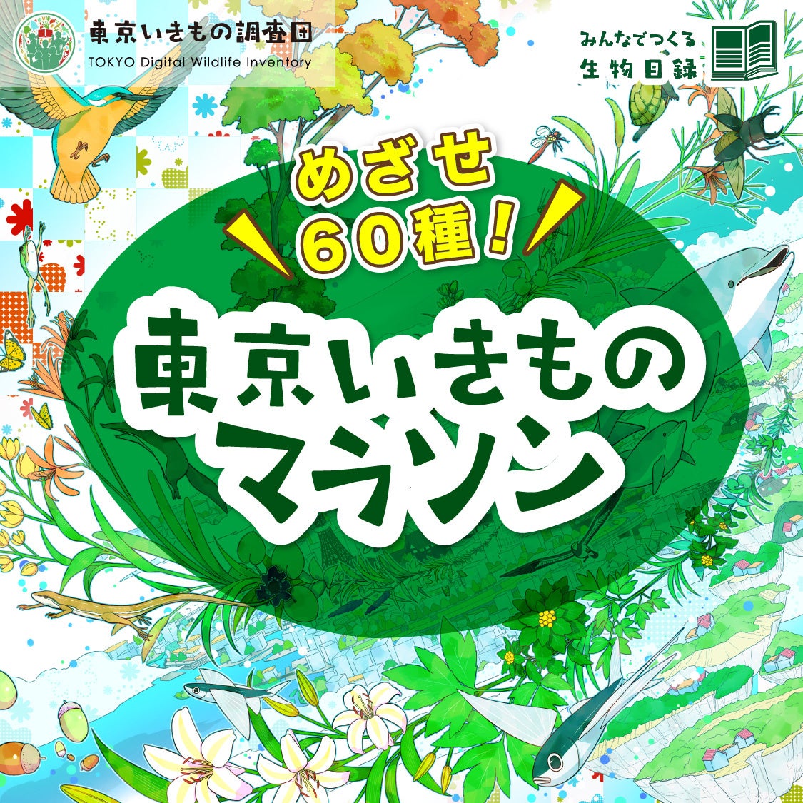 「東京いきもの調査団」は、東京の生物多様性を守るために、多くの方にいきもの調査に参加してもらい、みんなで作るデジタル野生生物目録「東京いきもの台帳」の実現を目指すプロジェクトです。
