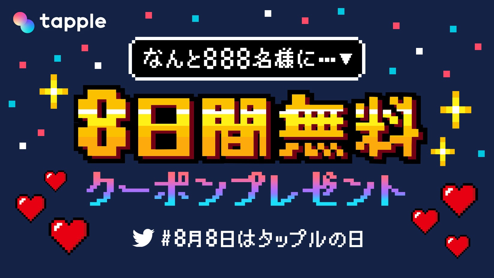 マッチングアプリ「タップル」、8月8日の「タップルの日」を記念して888名様に「タップル8日無料クーポン」が当たるTwitterキャンペーンを開催