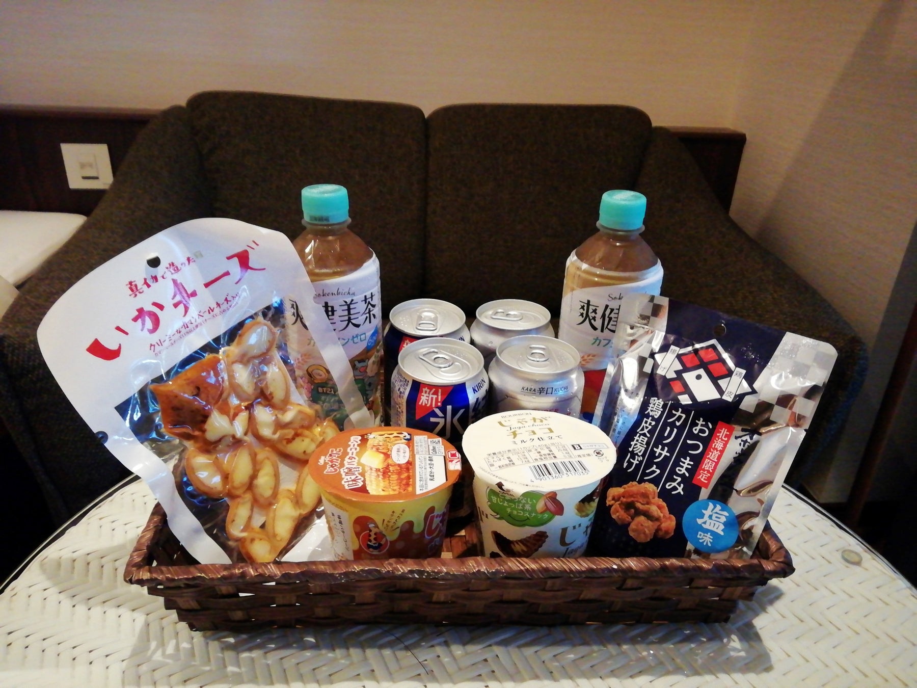 缶ビール(350ml)・缶チューハイ(350ml)・ペットボトルお茶(500ml) 1名様につき各1本ずつ+おやつセット