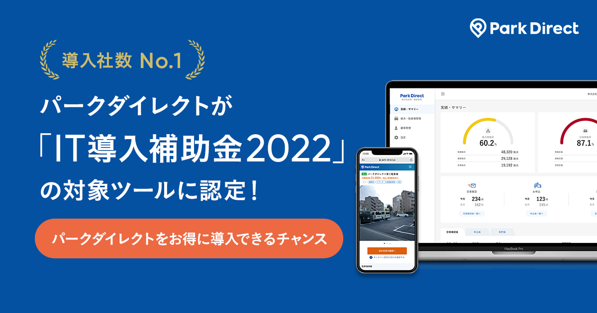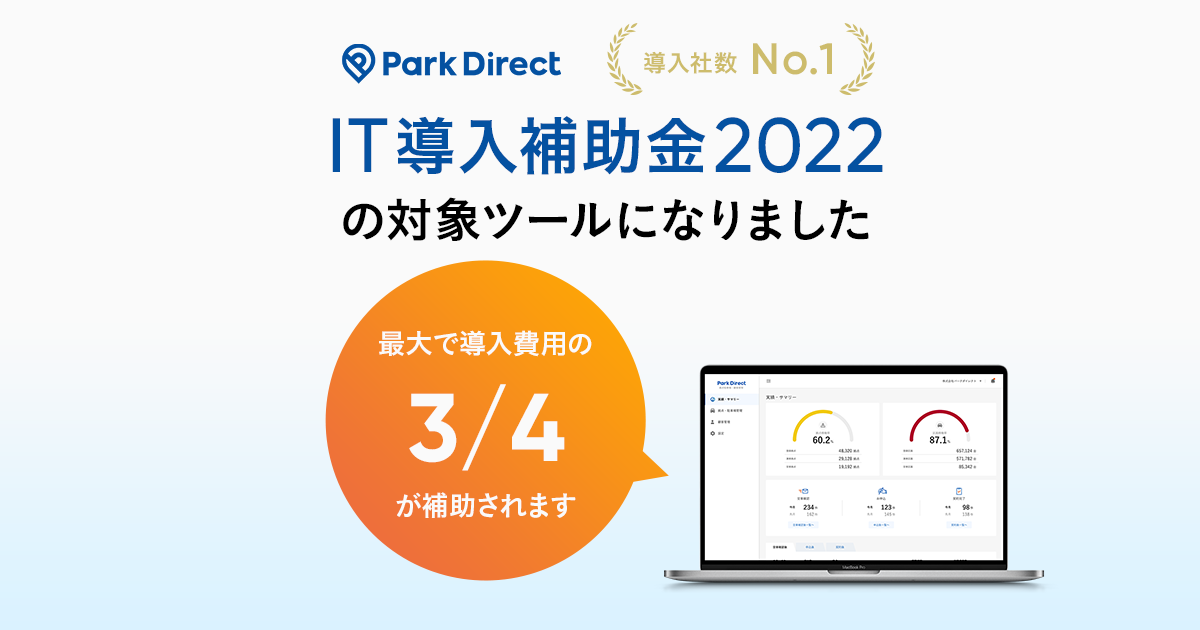 この度、株式会社ニーリーが「IT導入支援事業者」に採択され、当社が提供するモビリティSaaS「Park Direct」が、補助対象のITツールに認定されました。これにより、初期導入費用及び月額システム利用料2年間分の最大4分の3(5万円〜50万円)を補助金として受け取ることができます。