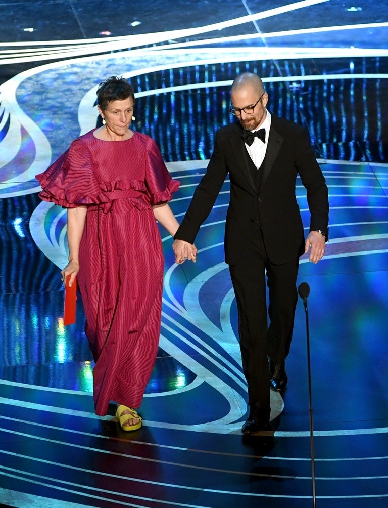 アカデミー賞受賞女優のフランシス・マクドーマンドが、ヴァレンティノのオートクチュールドレスを纏い、足には自身とピエールパオロ・ピッチョーニが共同でデザインした唯一無二のARIZONAを着用して授賞式に登場。