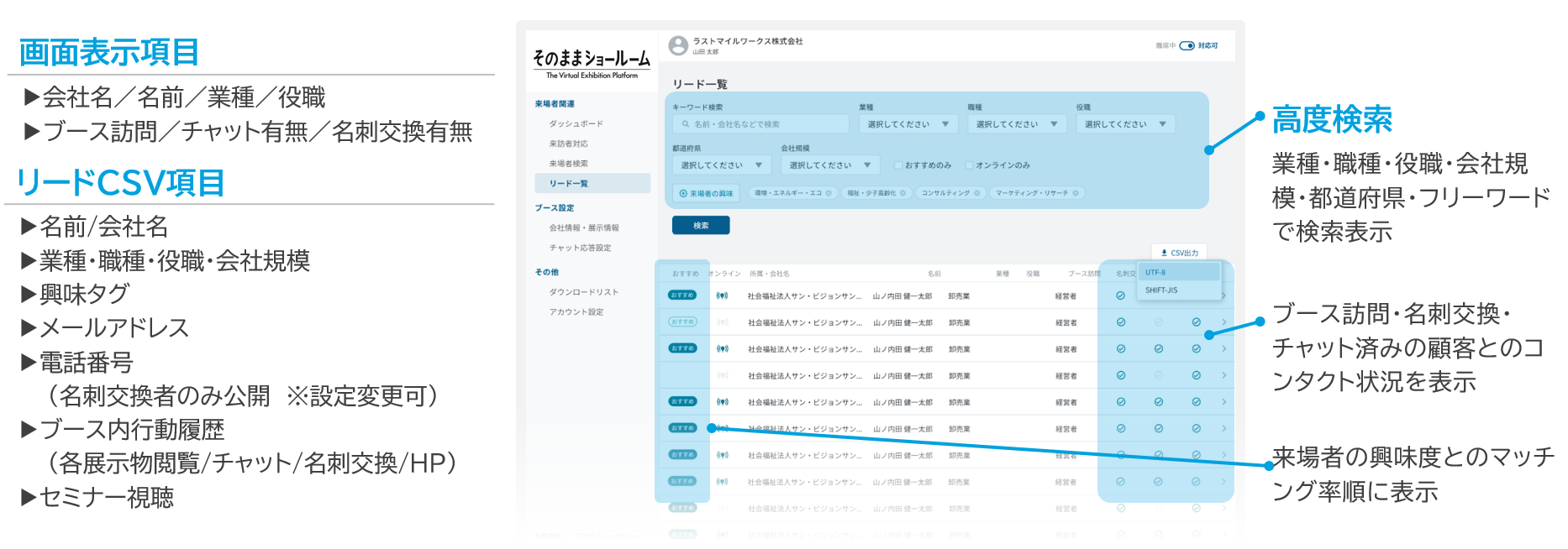 来場者データを、クライアント様企業がご利用中のMAツールにアップロードしやすいCSV形式でダウンロードすることが出来るようになりました。