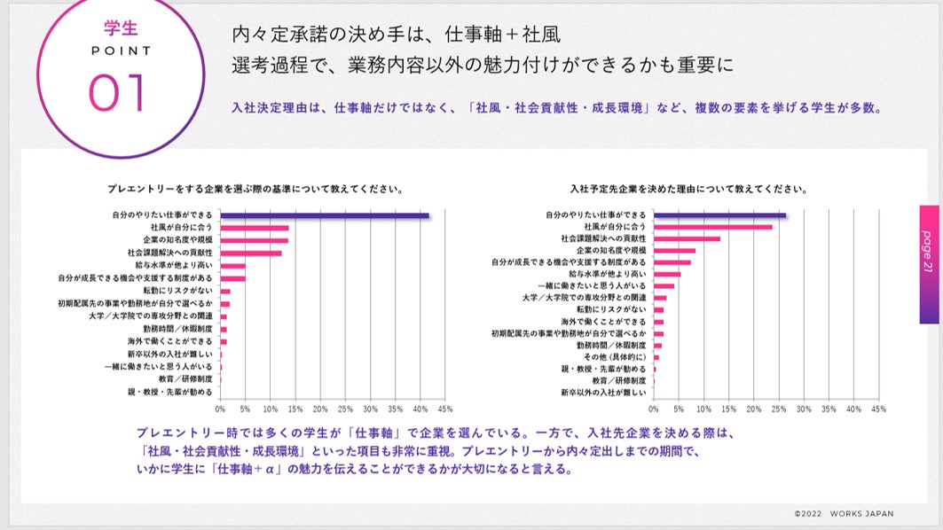 ② 学生は、仕事軸+社風を重視。