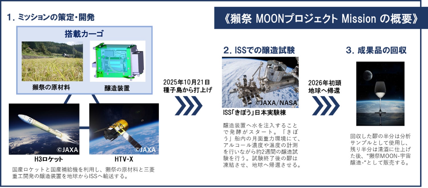 株式会社獺祭(本社:山口県岩国市、以下、獺祭)と三菱重工業株式会社(本社:東京都千代田区、以下、三菱重工)が共同で開発した宇宙用醸造装置と清酒の原材料が、国立研究開発法人宇宙航空研究開発機構(以下、JAXA)の新型基幹ロケット H3ロケット7号機に搭載され、2025年10月21日に種子島より打ち上げられることが決定しました。この醸造装置と原材料は、「獺祭MOONプロジェクト」で使用されます。