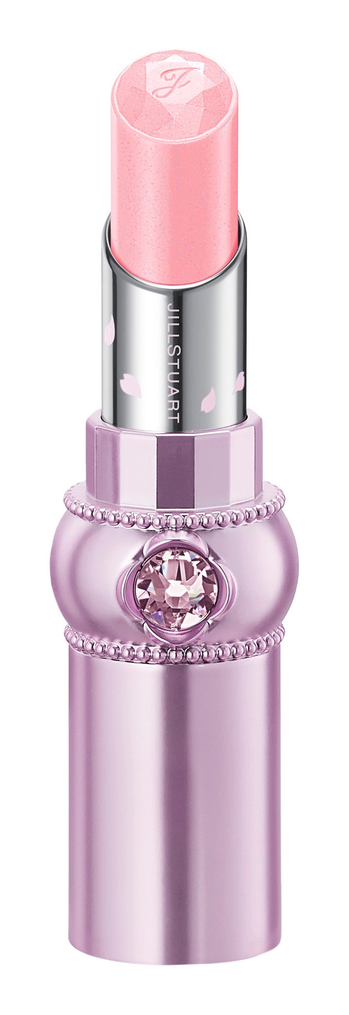 新芽から見え隠れする生まれたての桜の花びらをイメージした淡いピンクに、ブルー、レッド、シルバーの大粒パールを配合しており、ツヤやかな唇をより一層美しく演出します。