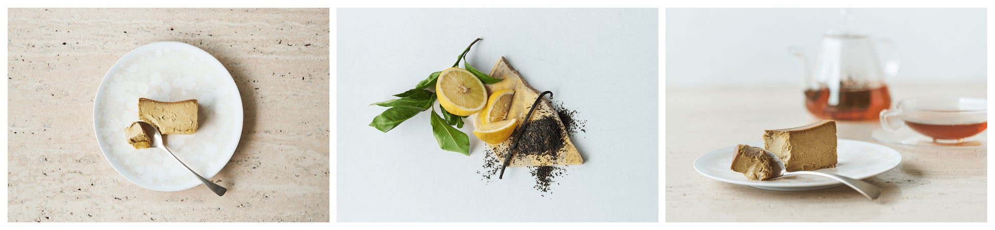 レストランデザートのような濃厚かつ儚い口どけと、バニラ・レモン・トンカ豆が生み出す、甘く爽やかな香りが特長で、温度によって変化する味わいと香りを楽しめる全く新しいチーズケーキです。