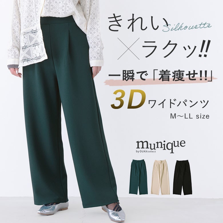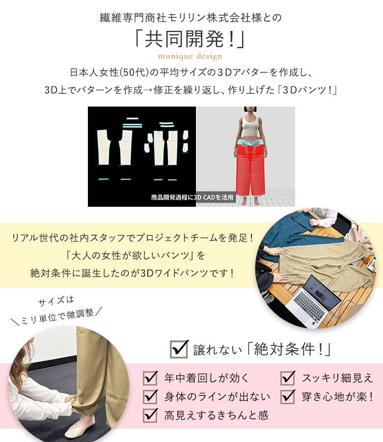 体型や年齢によるお洋服のお悩みを持つ方に、絶対一度は穿いて欲しい3Dワイドパンツが完成しました。