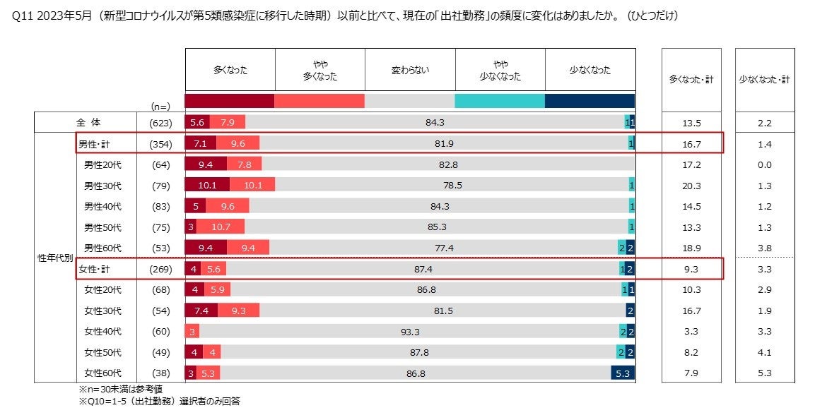 7)2023年5月以前と比べた出社頻度の増減