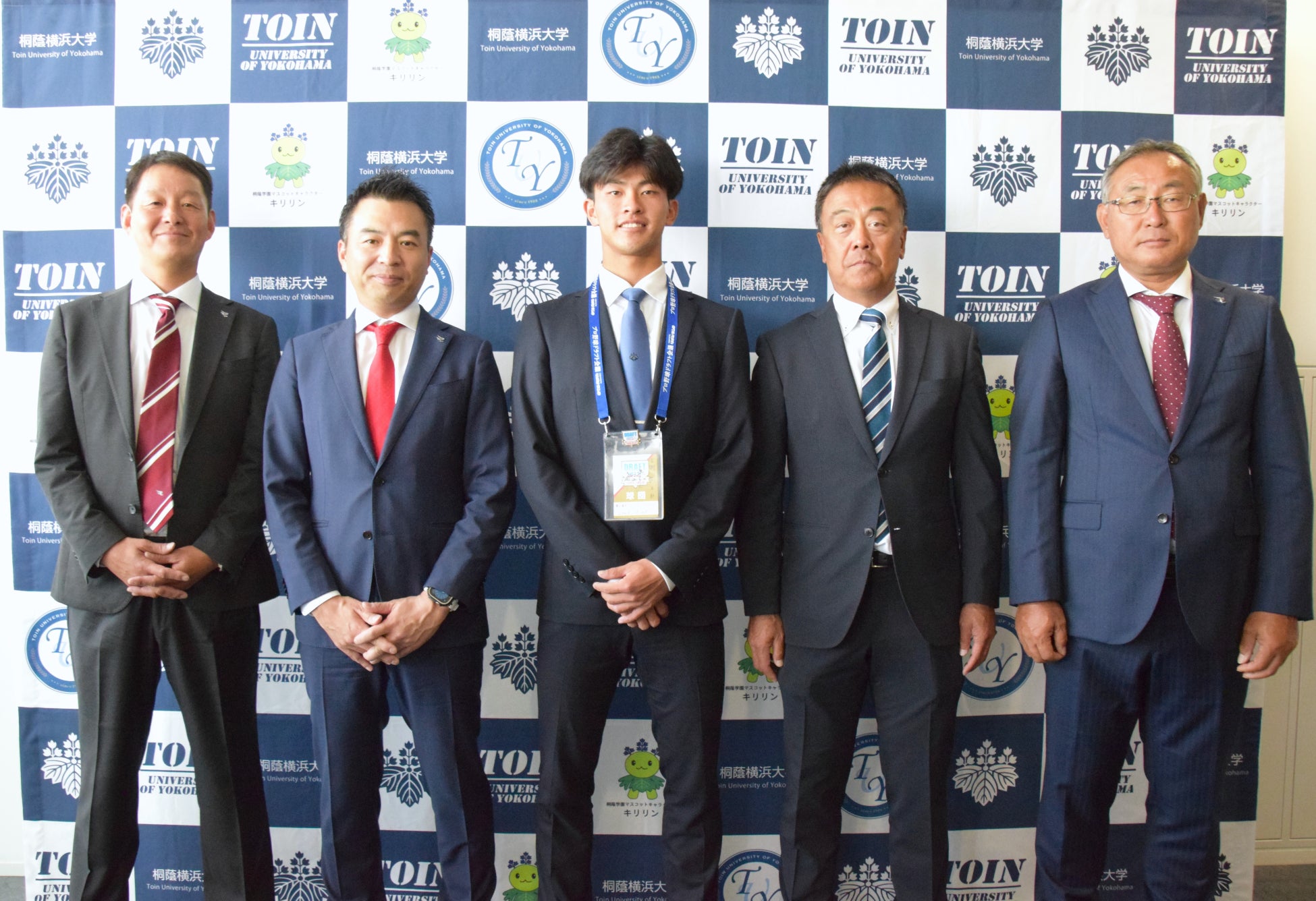 【桐蔭横浜大学】硬式野球部 古謝 樹選手がドラフト指名挨拶を受けました
