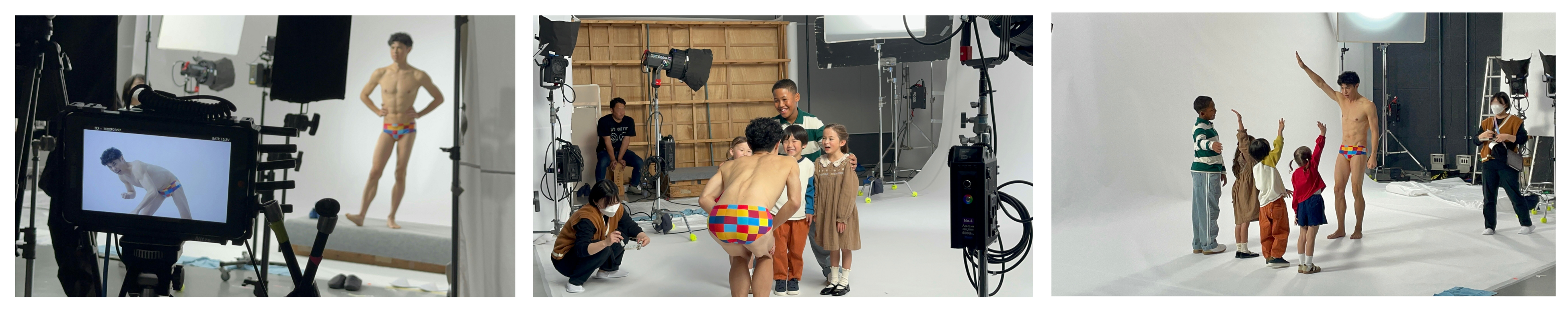 また最初は緊張気味だった子どもたちも、小島さんの全力パフォーマンスで、緊張がほぐれていき、カットがかかったあとは、小島さんの腕にぶら下がったりと、日本だけでなく海外の子どもたちの心も一瞬でつかんでおり、終始明るく温かい雰囲気に包まれた現場でした。