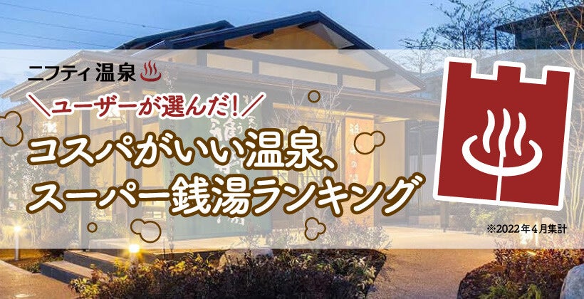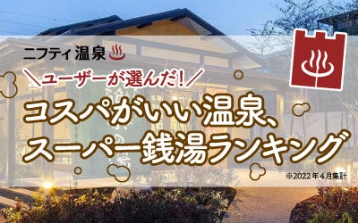 【ニフティ温泉】「ユーザーが選んだ!コスパがいい温泉・スーパー銭湯ランキング」を発表 GW後のお財布にも優しい温泉、スパ東西TOP5は?