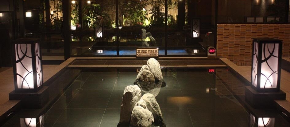 ▼体の芯から温まる「ナノ炭酸泉」にくつろぎの岩盤ラウンジ