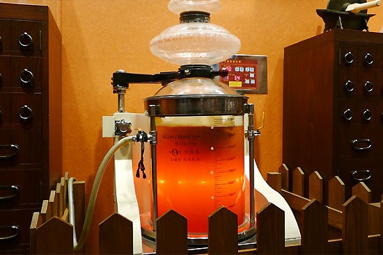<「天然温泉 満天の湯(神奈川県)」施設内で10種類の生薬を抽出し、炭酸泉に投入している>