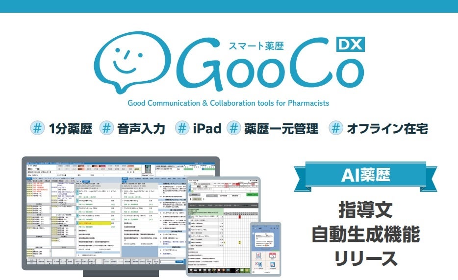 株式会社グッドサイクルシステム(本社所在地:東京都港区、取締役社長:西村 真樹)は、同社が開発する電子薬歴「スマート薬歴 GooCo DX」に、新たに生成AIを活用した音声データ取込による「AI薬歴 指導文自動生成機能」をリリースしたことをお知らせいたします。本機能の活用により、薬歴作成時間と労力を大幅に軽減し、薬剤師の対人業務をより一層サポートできることが期待されます。