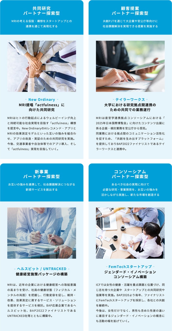 MRIおよびICFとスタートアップのそれぞれの強みやアセットを活かして、共創活動を行っています。