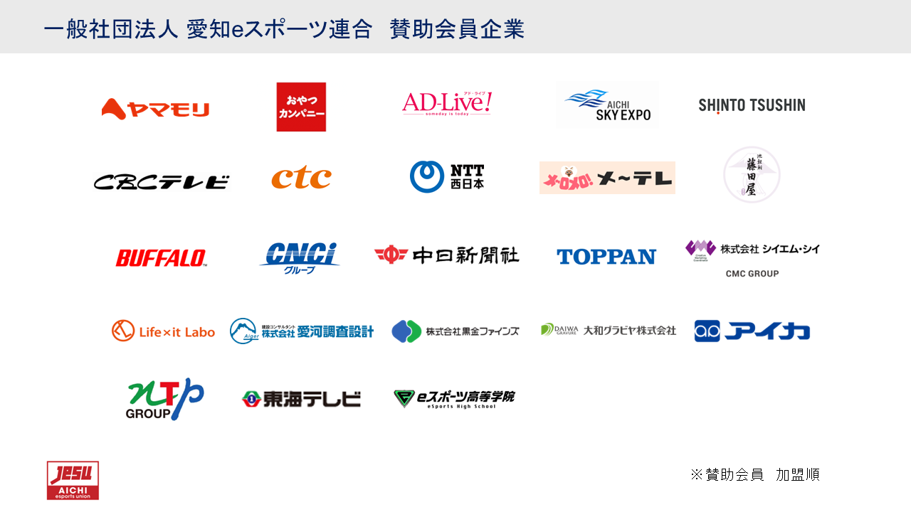 [愛知eスポーツ連合 賛助会員企業](2022年12月時点)※希望によりロゴを掲出しない企業様がございます。