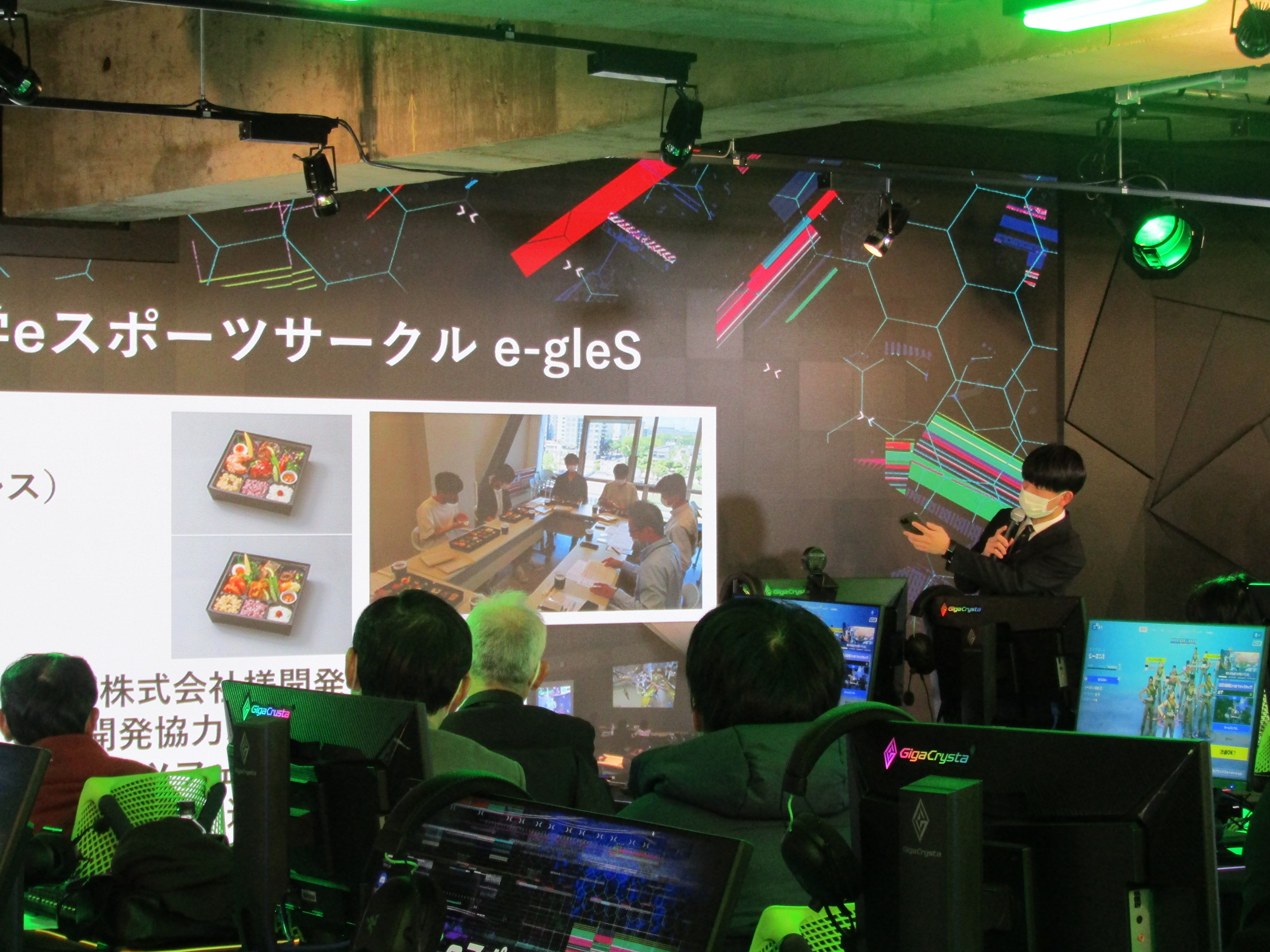 東海エリアでスポーツビジネスの研究やeスポーツの活動に取り組む学生も登壇しました。古田莉穂さん(愛知eスポーツ連合 インターン)は、スポーツ産業で活躍する人材育成を目指す「名古屋・東海スポBizカレッジ ”ガチスポ” 」の概要や講義テーマ、立ち上げに携わったプロスポーツクラブ「名古屋OJA Baseball5 」のイベント企画を紹介しました。光田蒼冴さん(中京大学eスポーツサークル e-gleS)と山田恭平さん(名古屋大学eスポーツサークル DISBOAD 代表代理)も各大学での活動内容を報告しました。