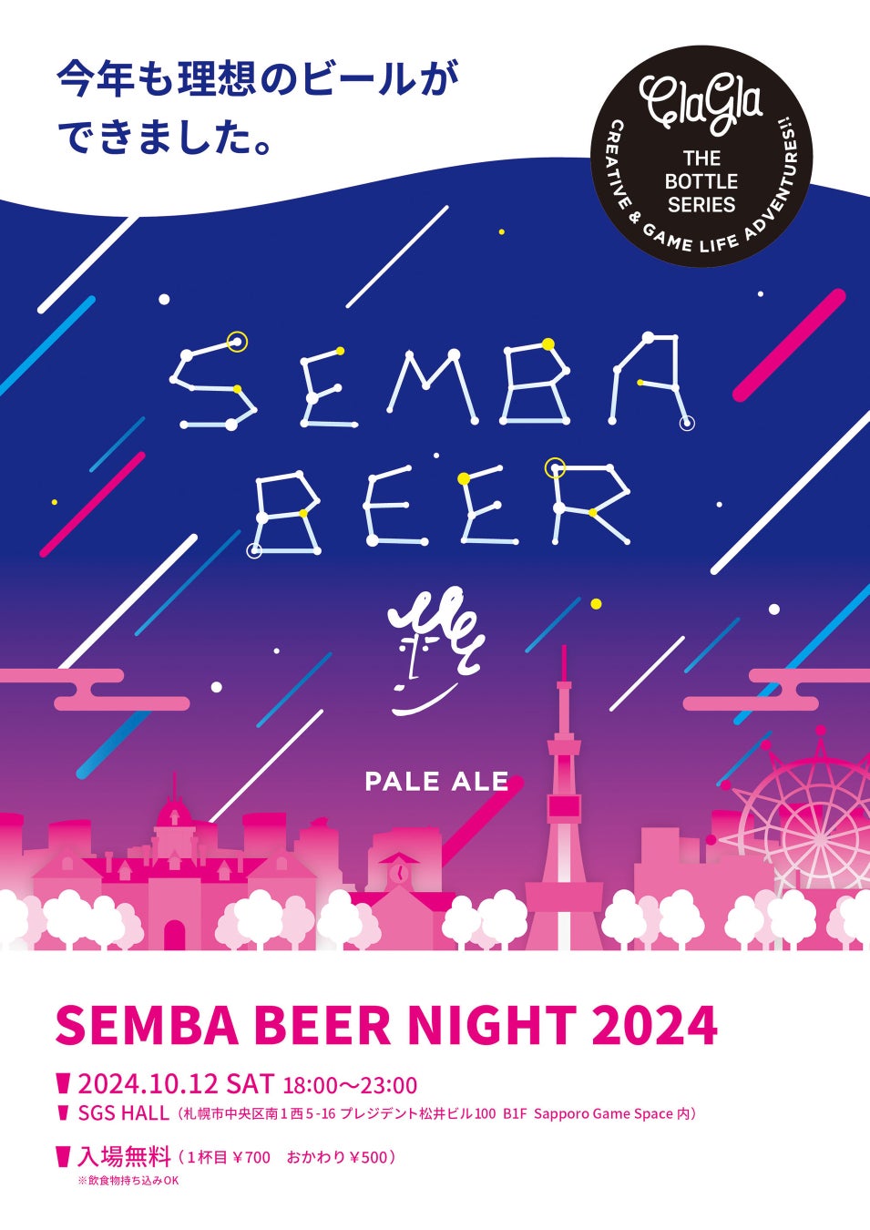 札幌市にあるボードゲーム・謎解きゲームのメーカーClaGla(株式会社クラグラ)は、オリジナルクラフトビール『センバビール』を2024年10月8日(火)に発売します。10月12日(土)には発売を記念したイベント「SEMBA BEER NIGHT 2024」を開催いたします。