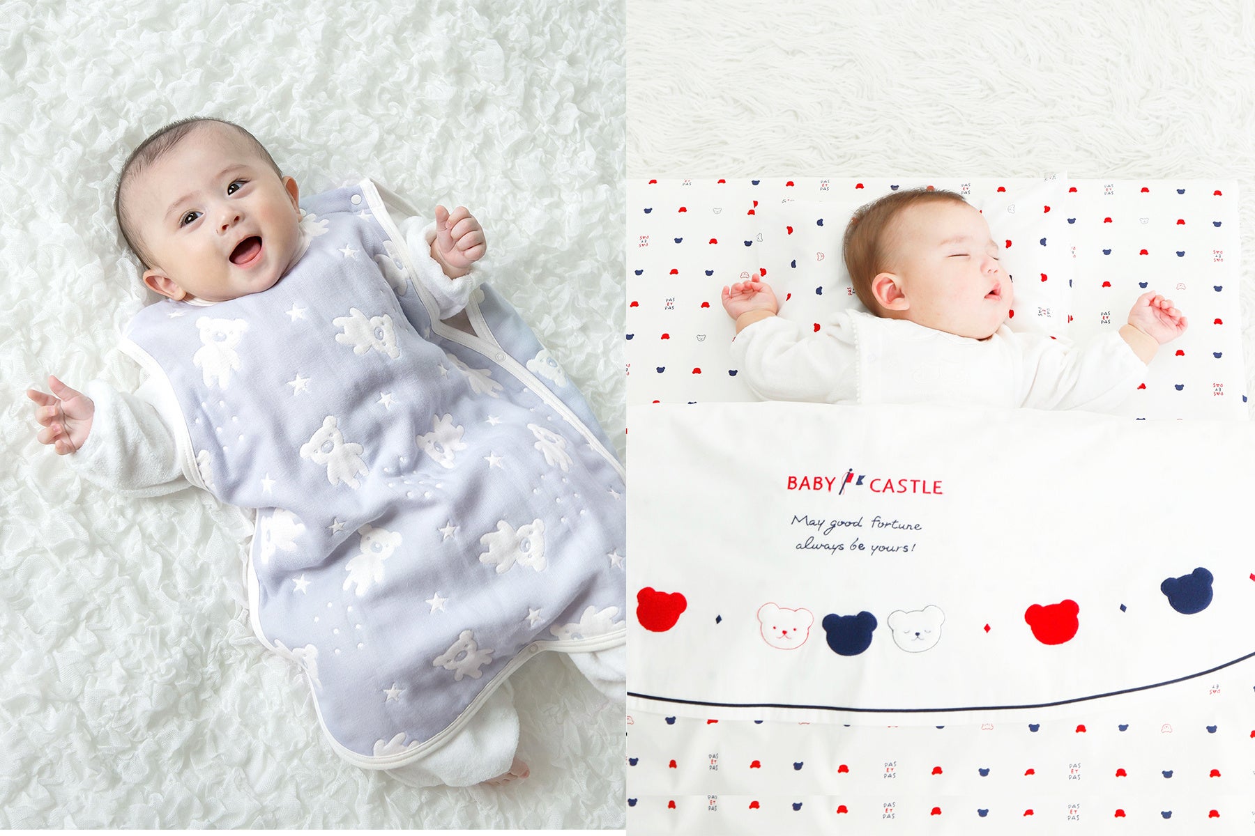 「赤ちゃんの城」は、日本では数少ない新生児の寝具・衣料を専門に取り扱う「レイエットメーカー」で、創業当時から約半世紀、日本製のものづくりにこだわり、現在もデザイン・素材の選定・縫製まで全て国内で行っています。