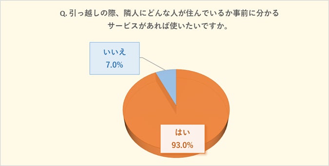 9割以上がサービスを利用したいと回答。新しい環境を始めるにあたり、隣人リサーチは非常に関心度が高いことが分かります。