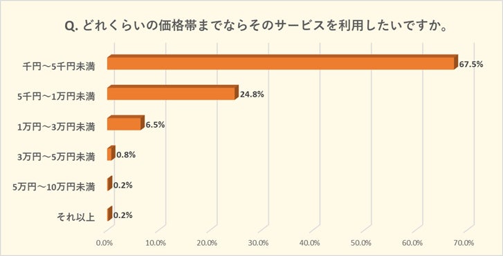 この結果をふまえて、どれくらいの価格帯までならそのサービスを利用したいかについてお伺いしました。