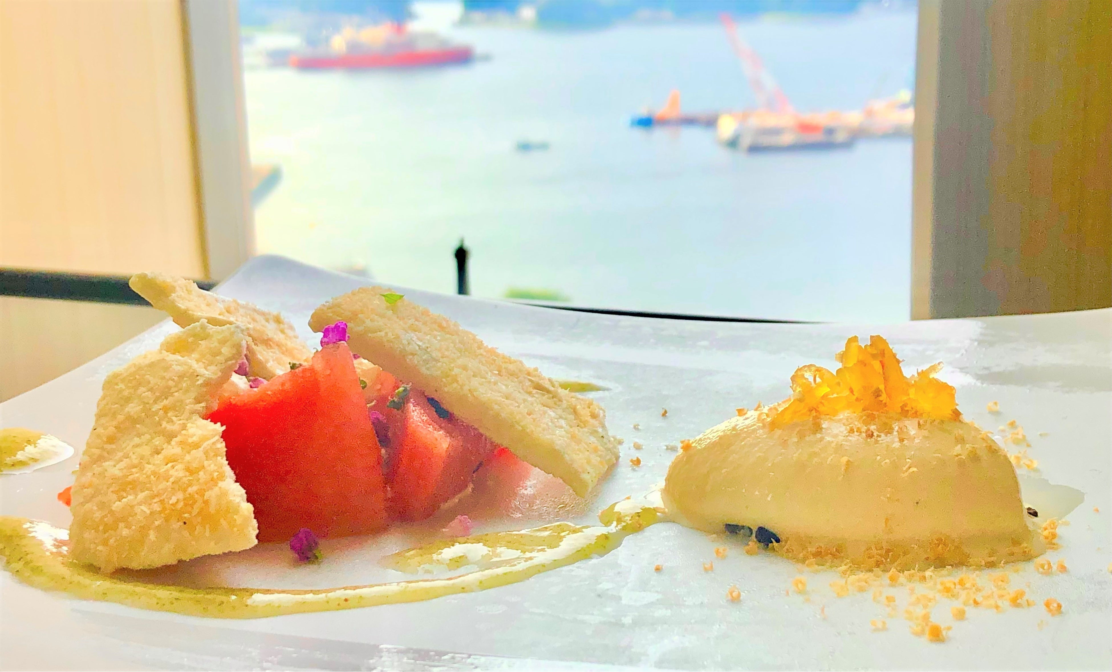 コース料理にはスズカク農園の野菜も使用しており、前菜から最後のデザートまで一品ずつお愉しみいただけます。19階のレストランからの眺望や夜景と共に三浦半島の大地の味をご体験ください。