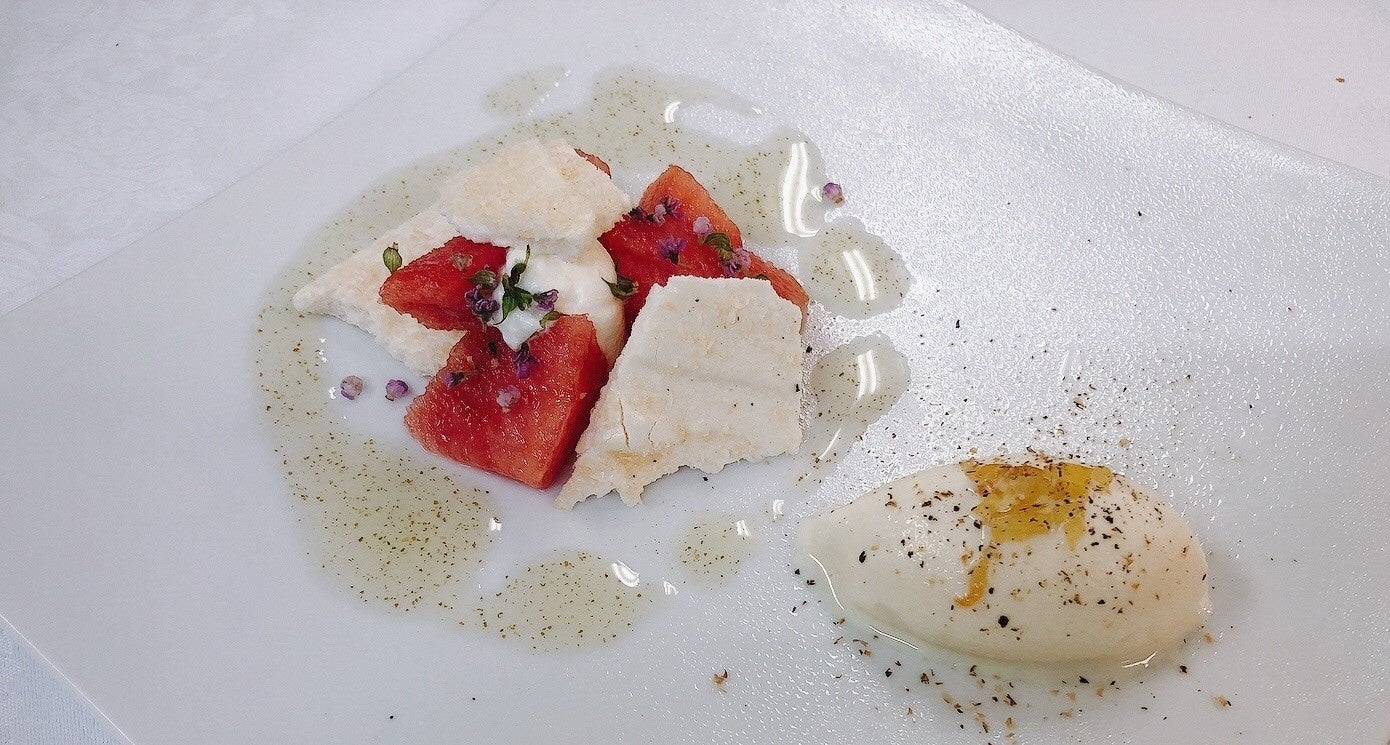 夏の期間限定でランチコース(Menu Saison)とディナーコース(Bonne Femme, Bourgogne)のデザートに、地元の採れたて「三浦のスイカ」を使用しています。