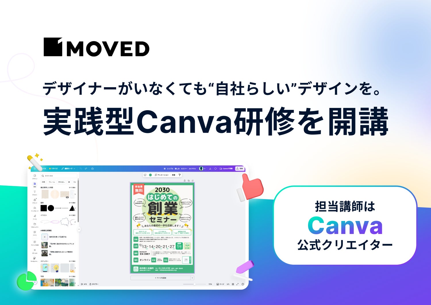 株式会社MOVED(本社:東京都大田区、代表取締役社長:渋谷 雄大、以下MOVED)は、デザイナーがいなくても“自社らしい”デザインを作れるようになる『Canva実践研修』を開講しました。