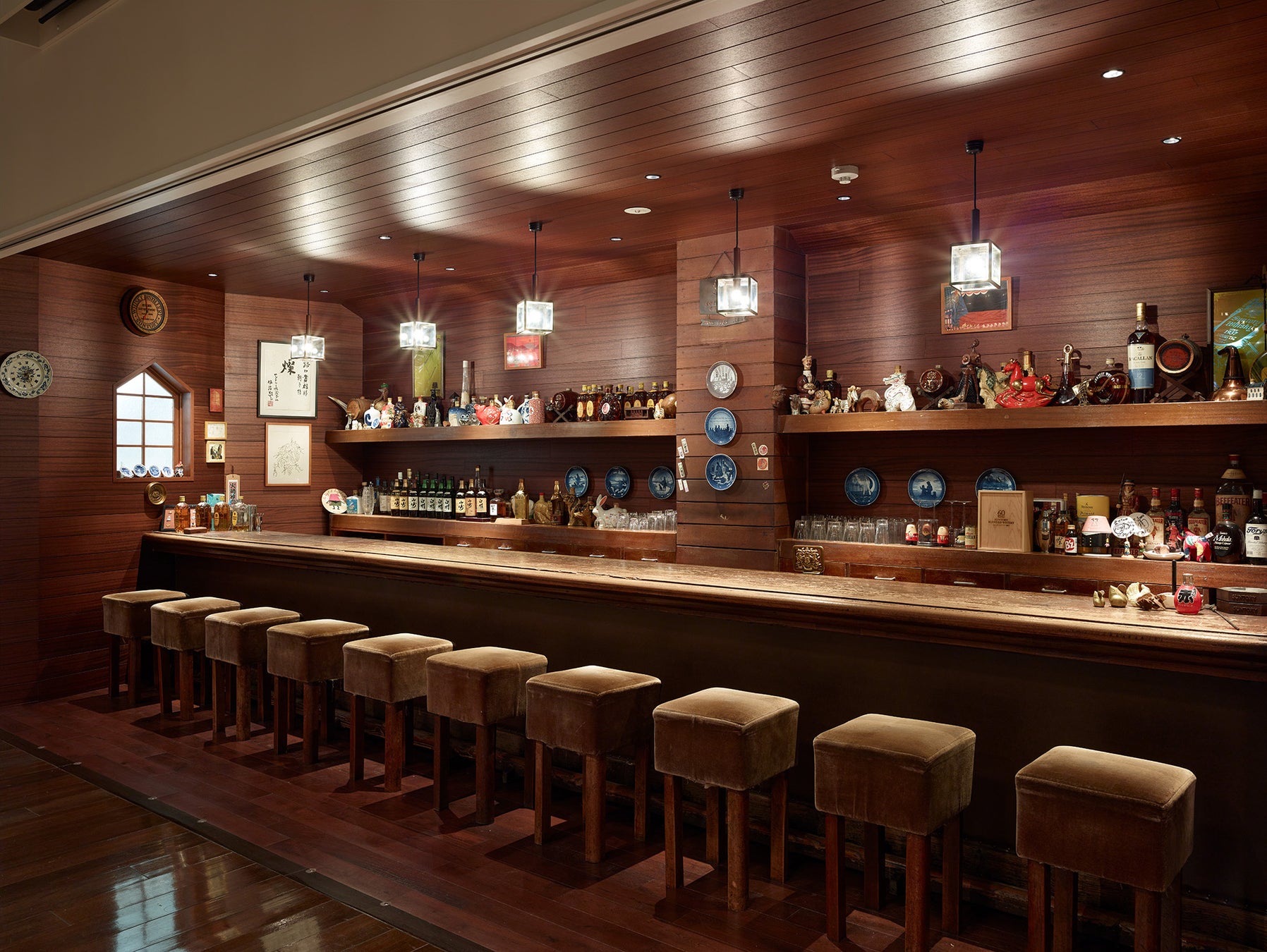 船場は、グループ会社である株式会社装備と共に「バー露口」の移設を実施しました。経年により取り扱いに高度な技術が必要であったため、高い木工加工のノウハウを持つ装備が、復元を前提に丁寧に解体・修繕を行い、移設が実現。バーの象徴的な存在であった、全長6メートルのラワン材一枚板のカウンターや、椅子、ペンダントライトなどの小物の数々も運び込み、当時の雰囲気まで忠実に再現した場を創り上げました。