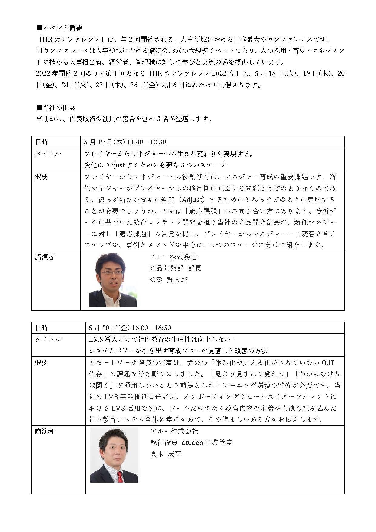 人材育成支援のアルー日本最大の人事領域イベント『HRカンファレンス2022春』への出展及び登壇のお知らせ