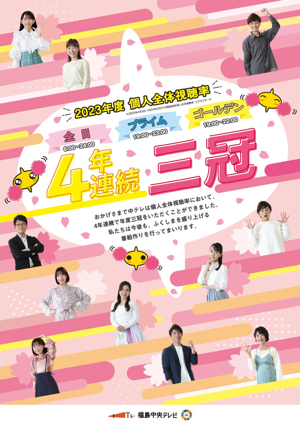 福島中央テレビが 2023年 年度平均視聴率で三冠を獲得