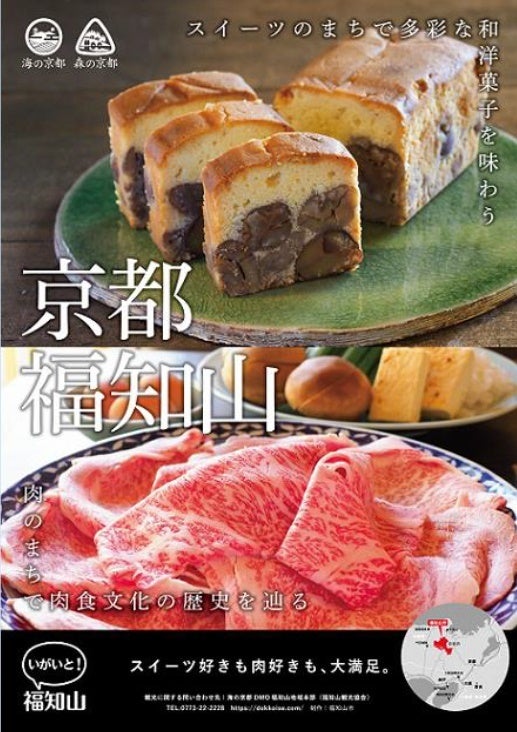 福知山市は「地域活性化のための連携協定」を結ぶANAグループにて地域創生事業を担うANAあきんど株式会社京都支店と連携し、2022年度、『「食」を通じた観光促進事業』を進めています。「肉のまち」、「スイーツのまち」や「ふくちやまのエエもん」を全国にアピールし、福知山産品を活用した更なる「食」の展開を行い、魅力ある商品開発・改良、販路支援を行うことで「食を通じた観光促進」を一層強化します。
