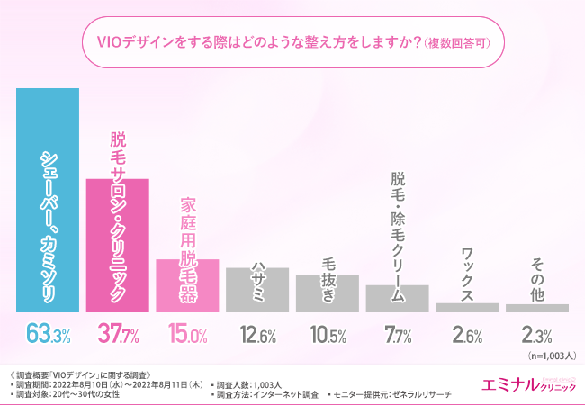 そこで今回、医療脱毛のエミナルクリニック(https://eminal-clinic.jp/lp01/?refmedia=11073)は、20代~30代の女性を対象に、「VIOデザイン」に関する調査を実施しました。