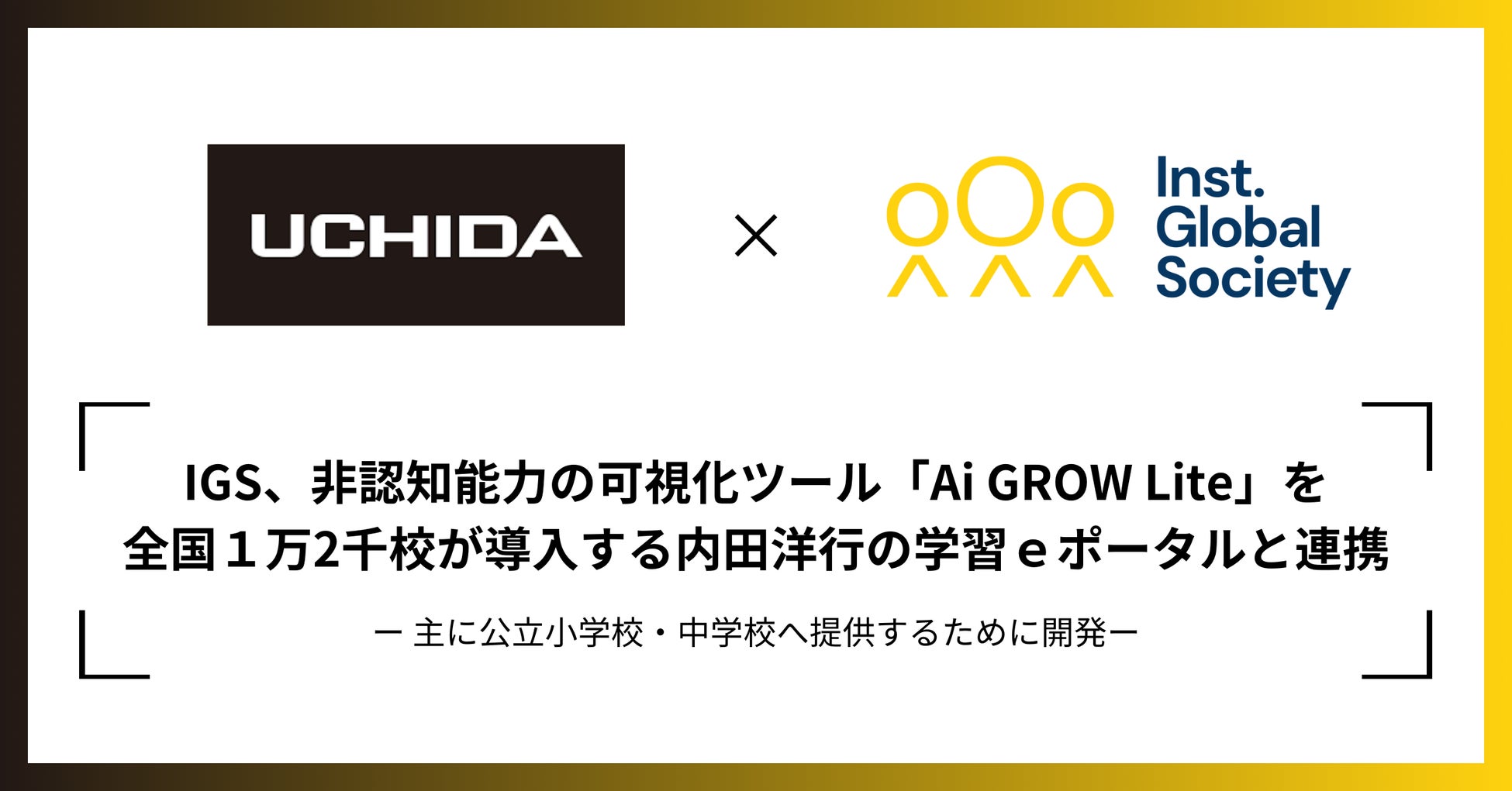 Institution for a Global Society株式会社(本社・東京都渋谷区、代表取締役社長 福原 正大、以下「IGS」)は、非認知能力の可視化ツール「Ai GROW Lite(アイ・グロー・ライト)」を開発し、株式会社内田洋行(本社・東京都中央区、代表取締役社長 大久保 昇、以下「内田洋行」)が全国1万2千校以上に導入する学習eポータル「L-Gate(エルゲート)」の専売製品として連携します。内田洋行は6月3日より全国で販売開始します。