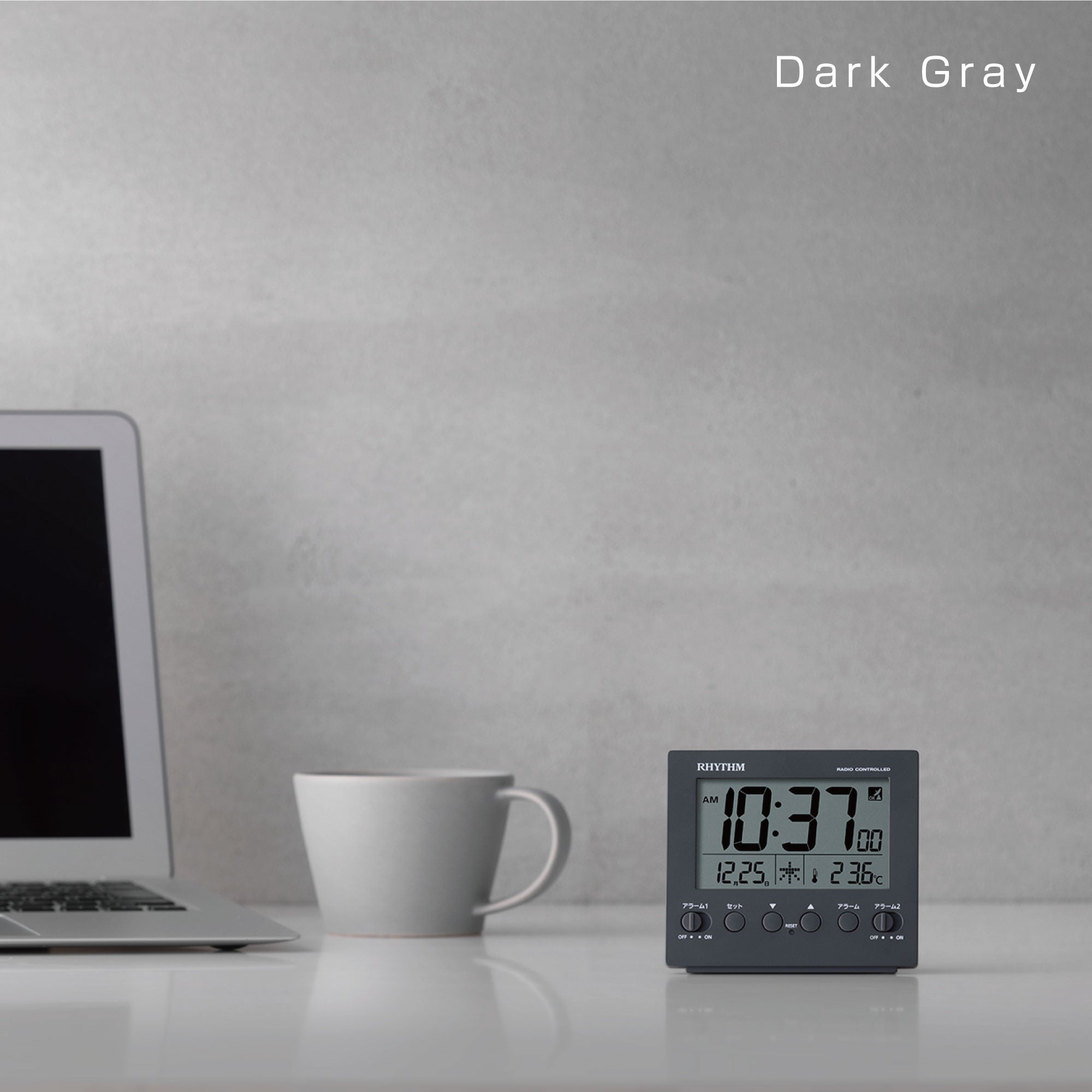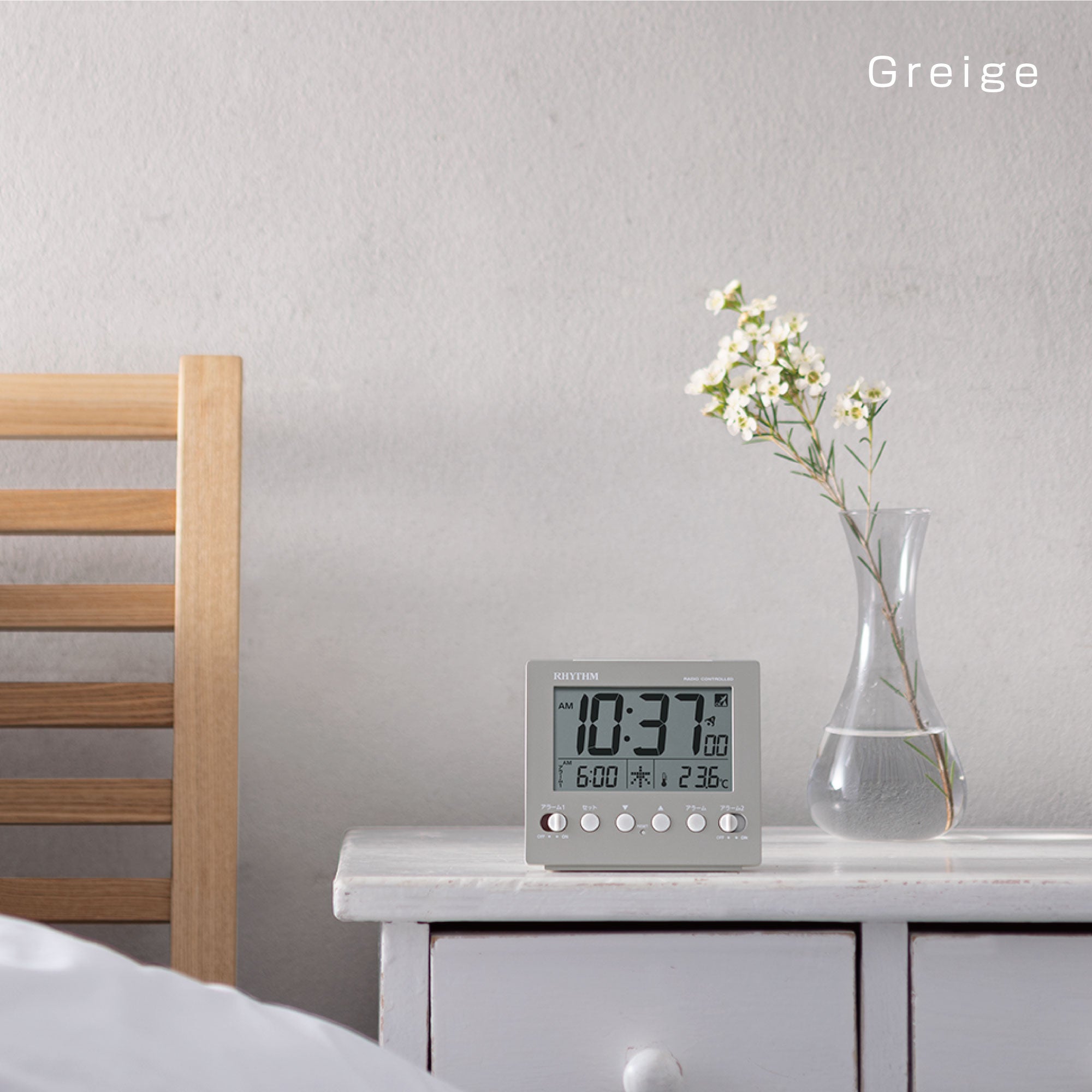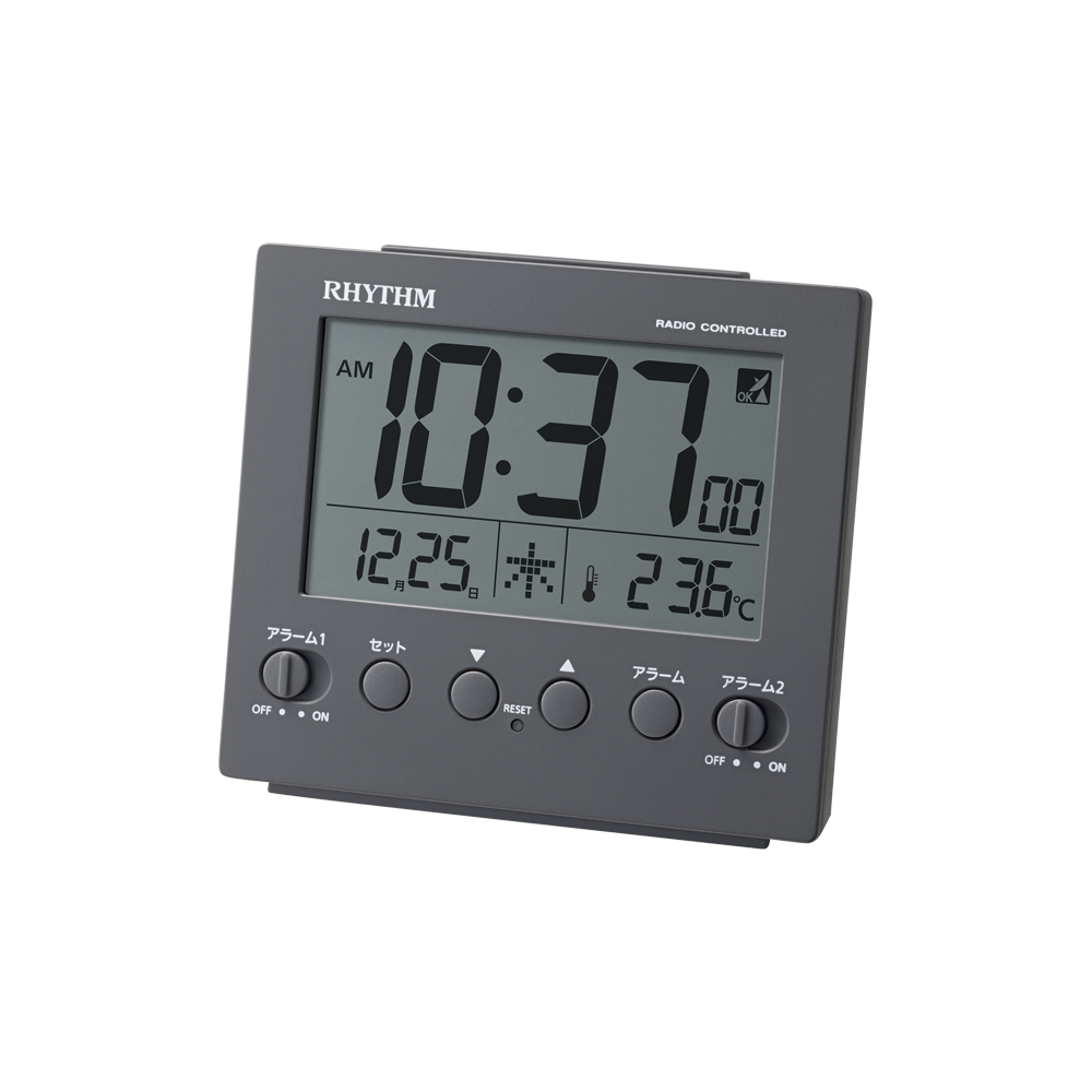 癖のないシックなグレイッシュカラーが特徴の電波デジタルめざまし時計シリーズです。