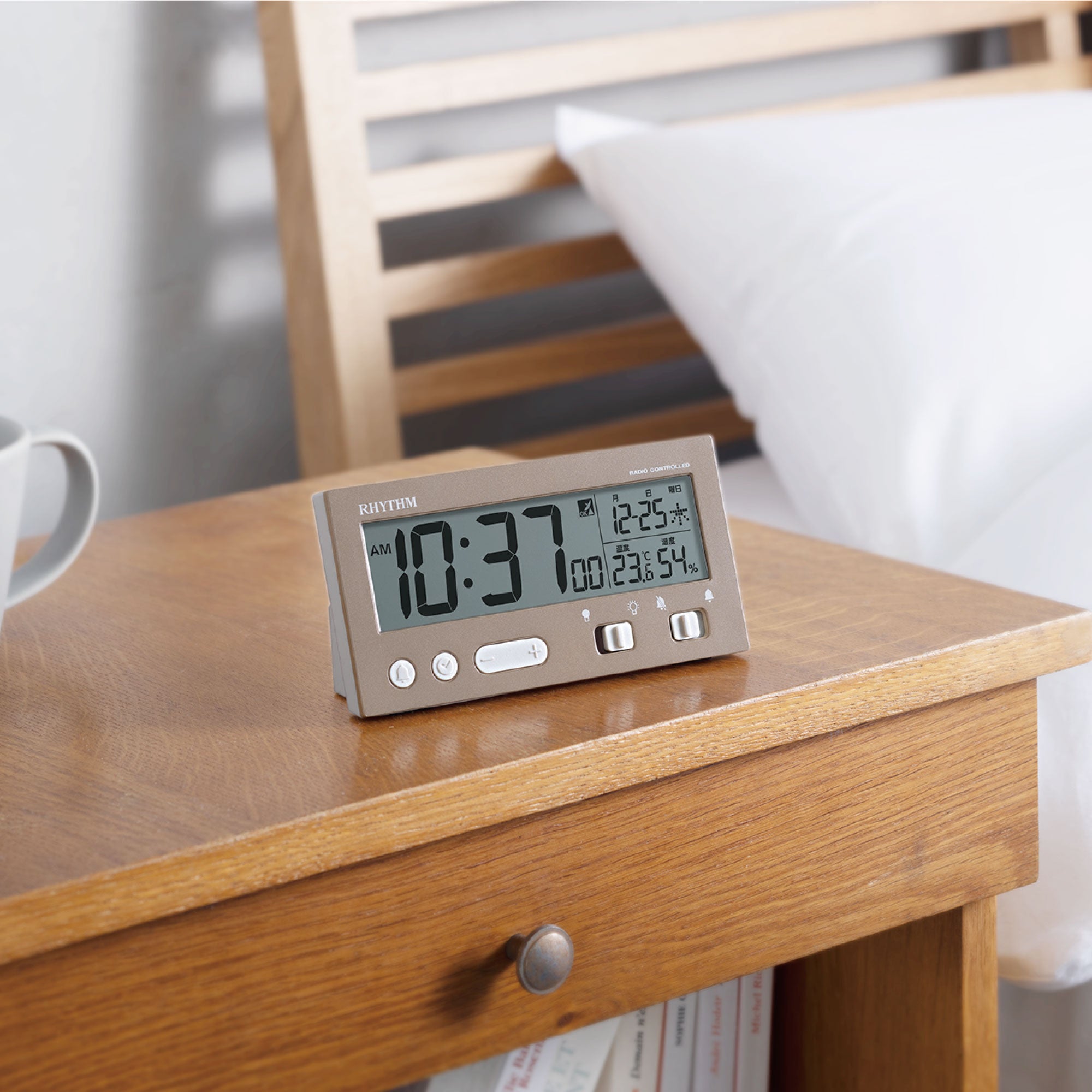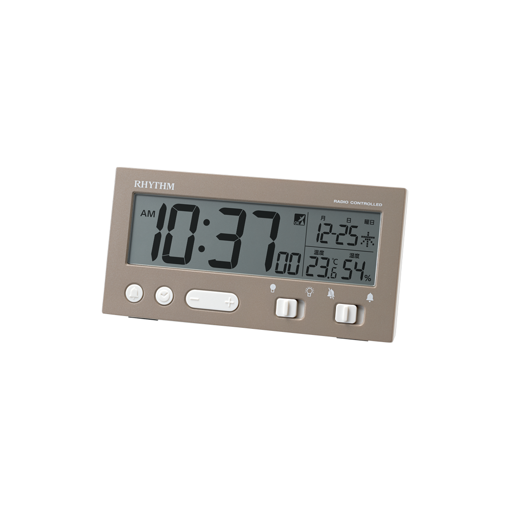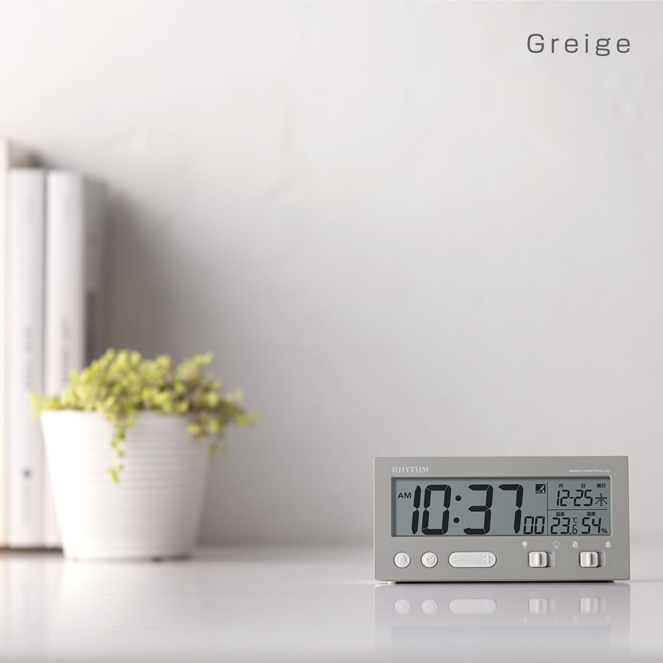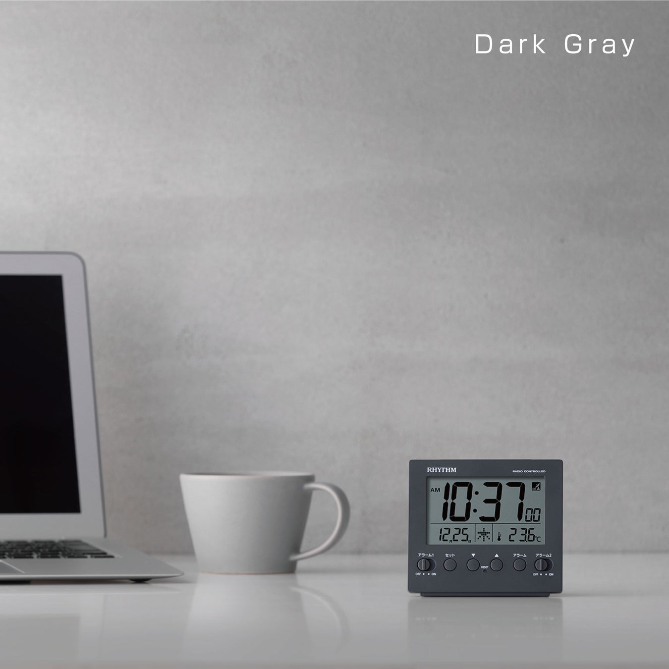 癖のないシックなグレイッシュカラーが特徴の電波デジタルめざまし時計シリーズです。