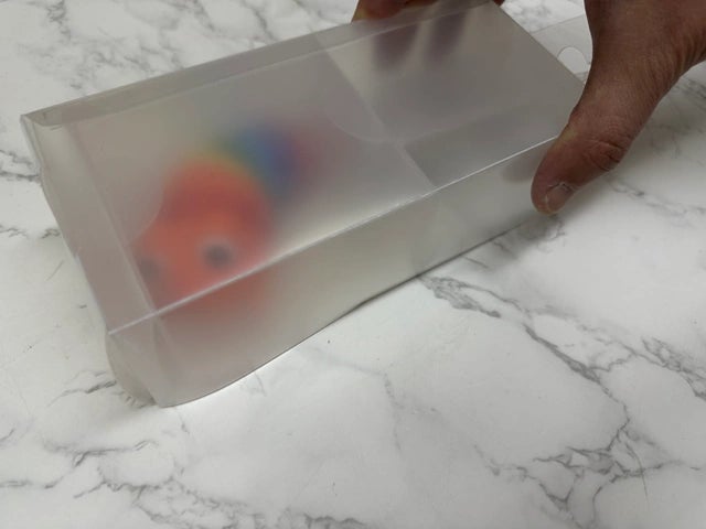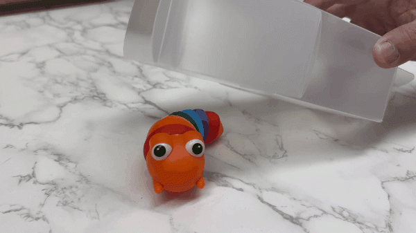 虫が苦手な人でも安心して捕まえられるように、中が見えにくい半透明にしました。