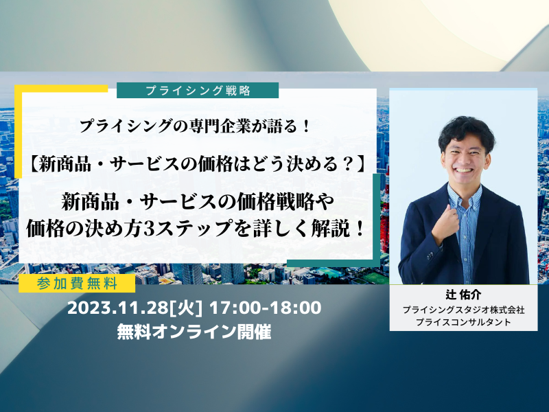 プライシングスタジオ株式会社|11月28日(火)17時~無料ウェビナー|【新商品・サービスの価格はどう決める?】新商品・サービスの価格戦略や価格の決め方3ステップを詳しく解説!
