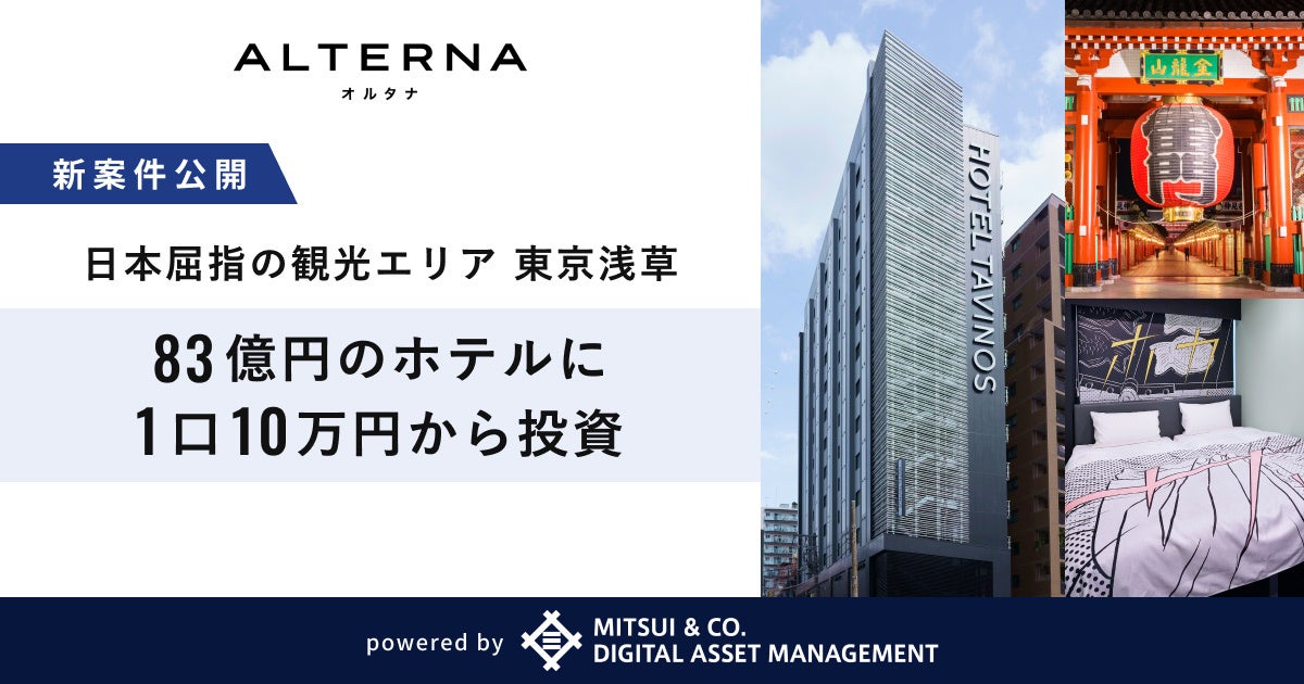 オルタナ、「三井物産のデジタル証券」シリーズの新案件を公開。日本屈指の観光エリア、インバウンドの玄関口 東京・浅草の83億円 278室のホテルに1口10万円から投資