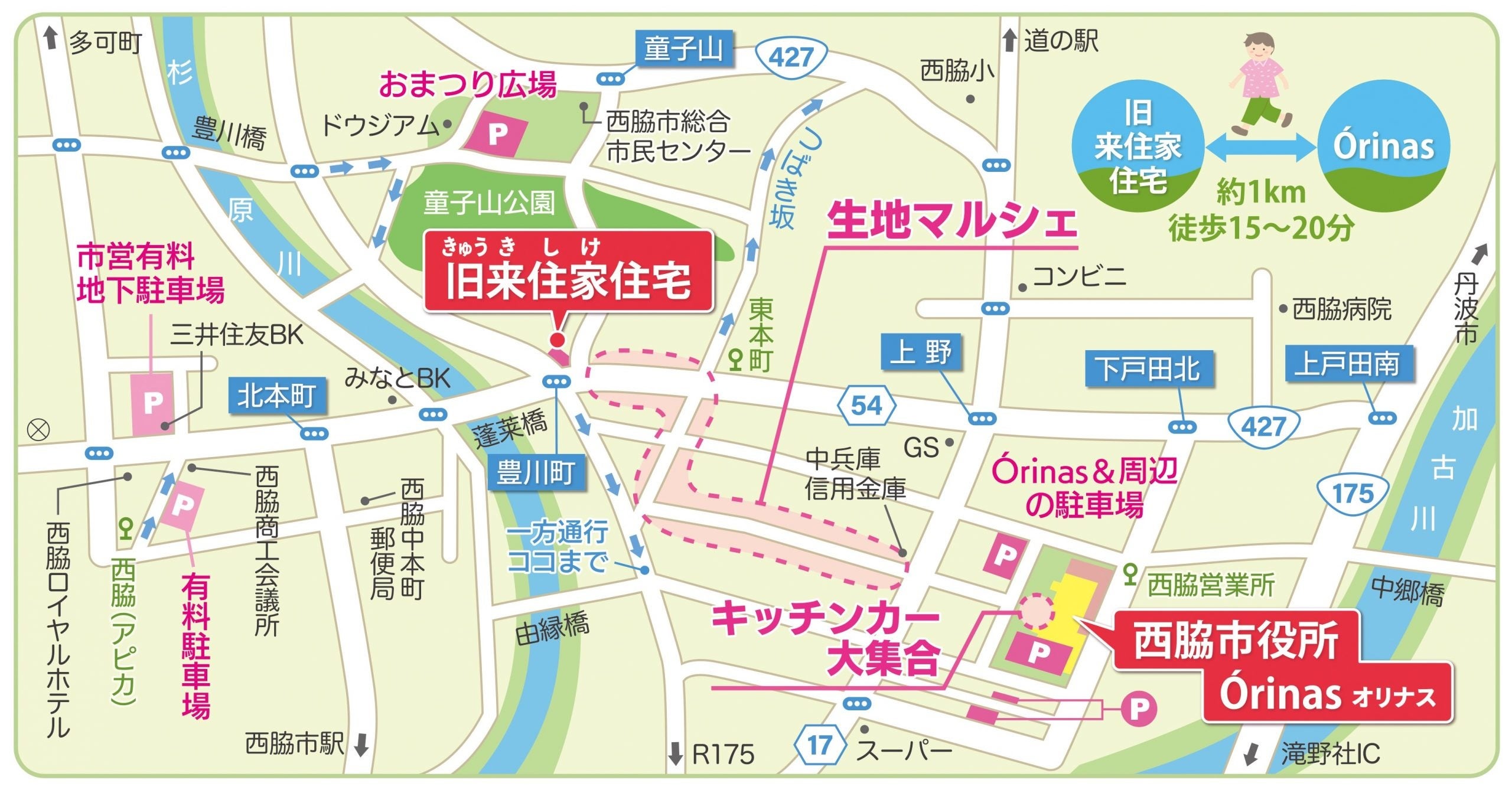 駐車場:西脇市役所駐車場及び周辺駐車場(無料) (西脇市下戸田128-1)