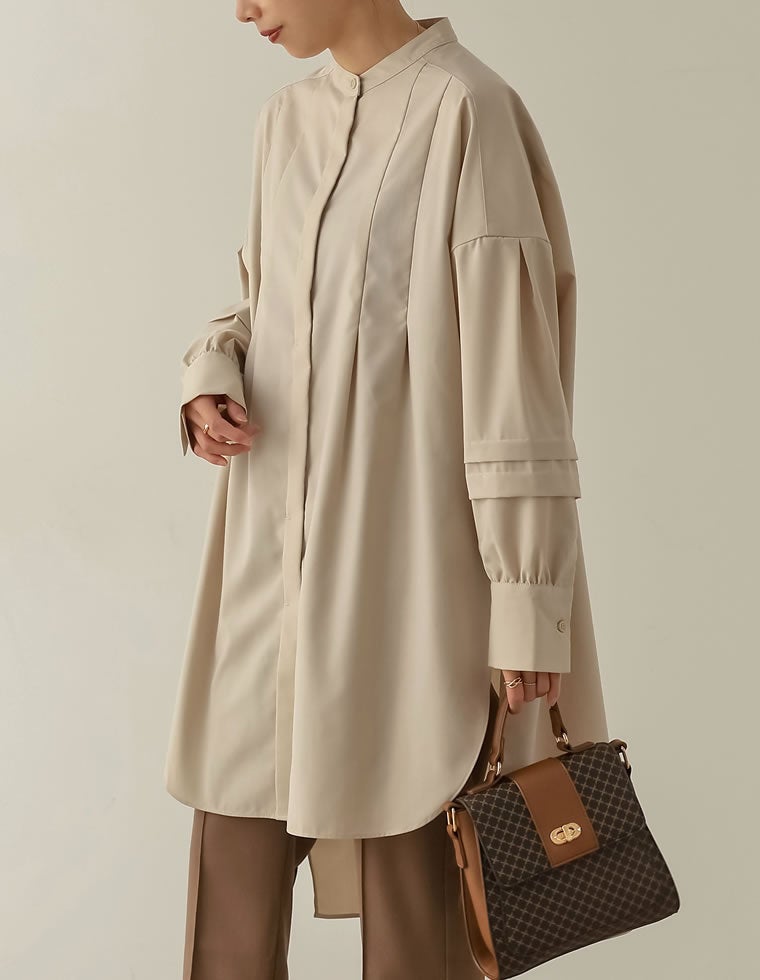 旬な雰囲気を演出する長めのカフスは、外出時はそのままに、家事などをする際には折り返すことがでます。