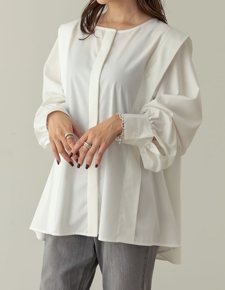 [yukiコラボ][楽天ROOMコラボ]ボリュームスリーブショルダータックブラウス