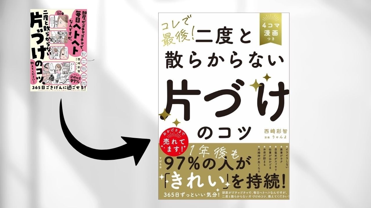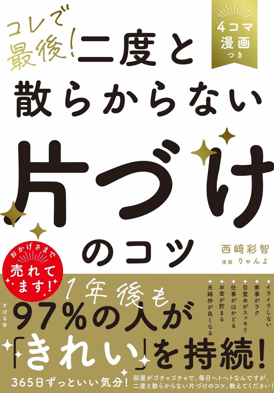 お片づけ習慣化コンサルタント・西崎彩智の著書『部屋がゴチャゴチャで、毎日ヘトヘトなんですが、二度と散らからない「片づけ」のコツ教えてください!』が新しく特大帯を装丁したバージョンを発売開始。