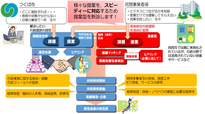 本事業は、すでに民間では導入が進んでいる先端ICT技術が、まだ公共サービスの分野では導入が進んでいないことに着目し、それらの技術を業務効率化等に資する製品又はサービスの創出に結びつけるため、民間事業者等との共同研究を実施する公共サービス共創事業です。つくば市は、行政ではまだ導入されていない技術の試験フィールドを提供します。