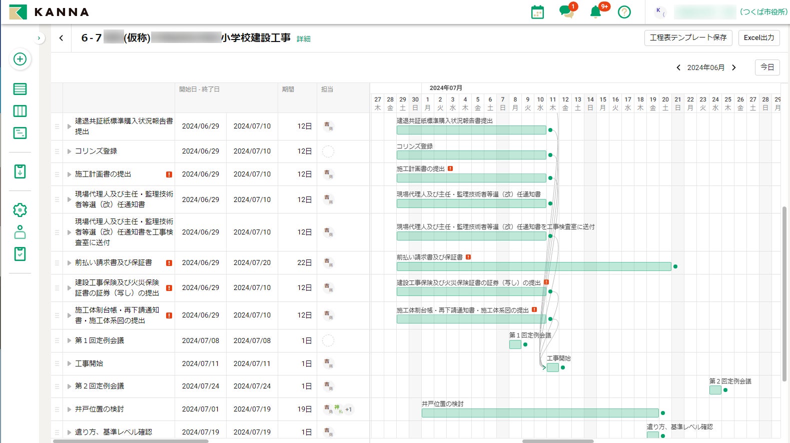 「KANNA」の工程表を活用して、施工におけるタスク管理や進捗状況を可視化するだけでなく、工程表のテンプレートを使って、業務のマニュアル化ができ、施工のタスクを一から作成する手間を省きます。