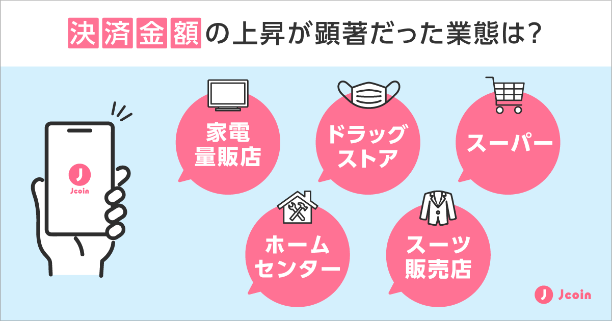- キャンペーン期間中、決済金額の増加が顕著だった業態は、家電量販店・ドラッグストア・スーパー・ホームセンター・スーツ販売店など