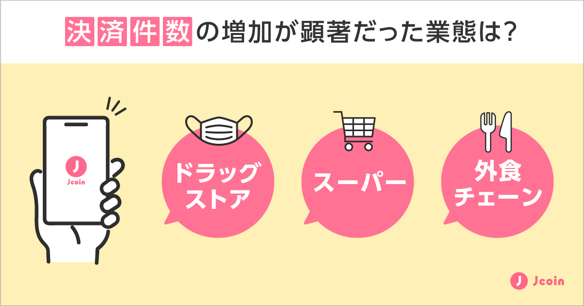 - キャンペーン期間中、決済件数の増加が顕著だった業態は、ドラッグストア・スーパー・外食チェーンなど