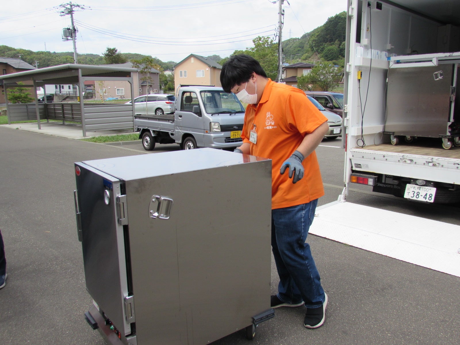 そのような中で、様似町で提供する食事は帯広にある工場で一括で調理し、2時間以上かけて学校まで運びます。加温カート(65℃以上を保持)と冷蔵カート(10℃以下を保持)を活用し、温度を保っています。